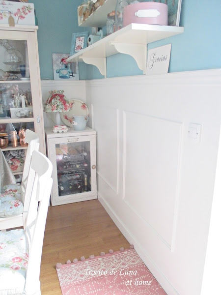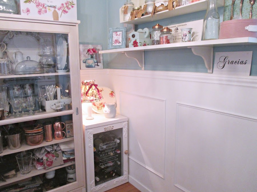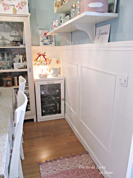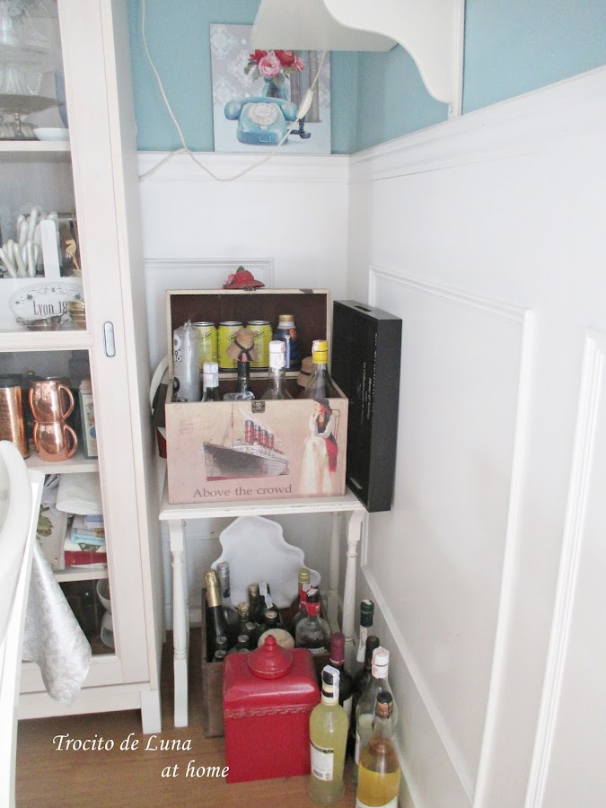 Reestructurando un poco el rincón - y ya de paso, limpieza general en toda la zona - quedó instalada la bodeguita, ahora sí, recogiendo todos los alcoholes de la casa.