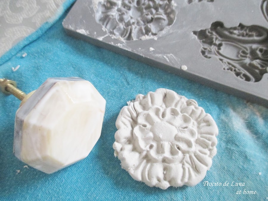 Para el tirador utilicé un molde de flor que adapté al mismo. Luego di unos toquecitos aquí y allá de marrón y dorado.