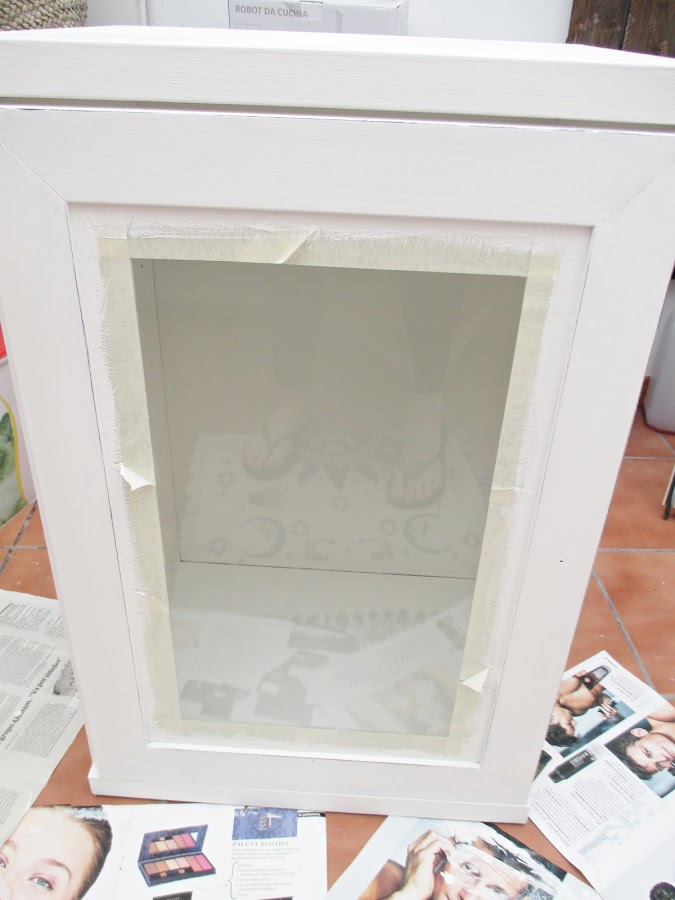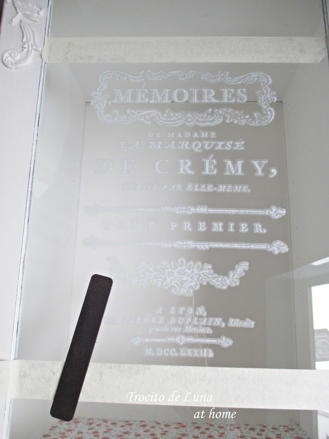 Pensé que al cristal podría quedarle muy bien una decoración y me hice con una calcomanía de IOD que me llegó a los pocos días (fascinada estoy), otras veces me ha tardado muchísimo cualquier pedido...