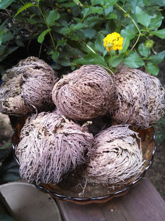 La Rosa de Jericó es un helecho. Cuando está cerrada, hecha una bolita, es porque no tiene donde absorber el agua que necesita, y se abre convirtiéndose en una planta preciosa de color verde intenso cuando la sumerges en ella. Por ese poder de transformación también la denominan como la planta de la resurrección. Bonito, ¿verdad?.