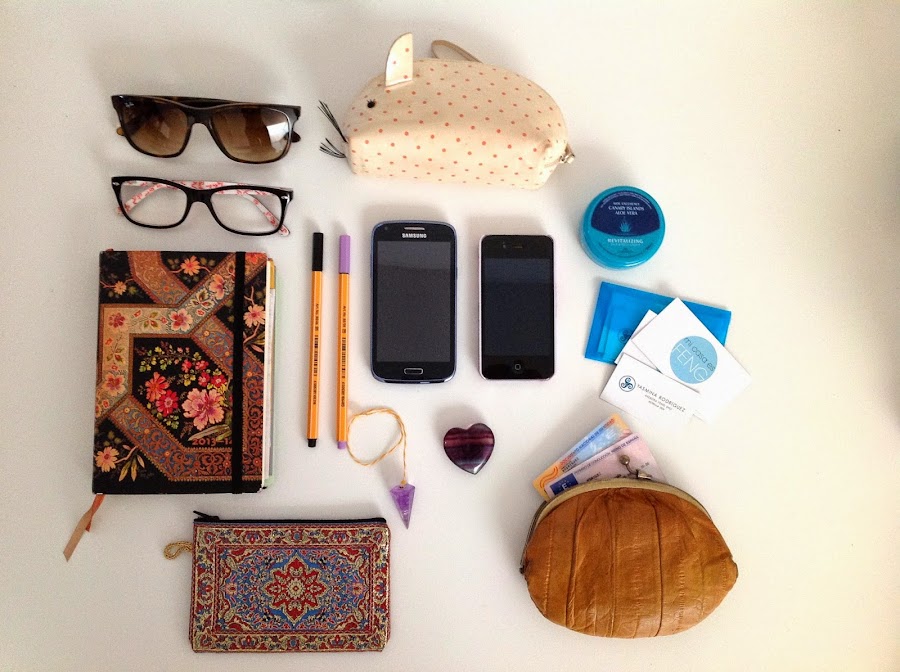 Mi bolso y mis bártulos... Tengo que predicar con el ejemplo hoy mismo he puesto orden a mi bolso preferido. Me considero una adicta auténtica a los bolsos, es un complemento que me encanta. Este es de Malababa un capricho que tuve hace un añito de una de las tiendas más bonitas de toda Galicia, Lina Escalante, la cual te recomiendo. Y lo que ves es todo lo que guardo en él y eso que he hecho limpieza.
