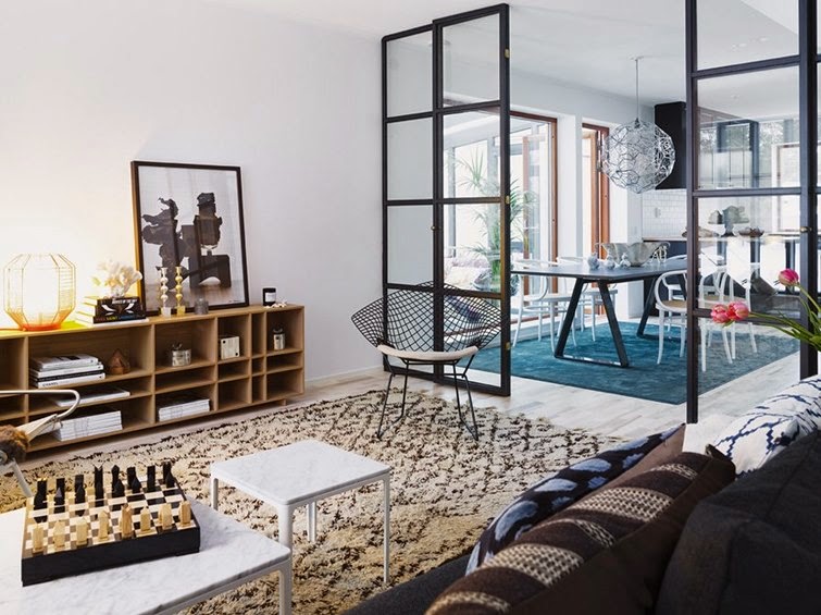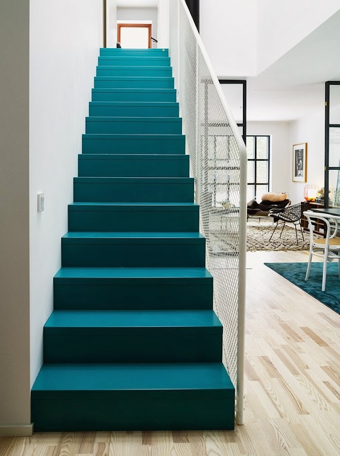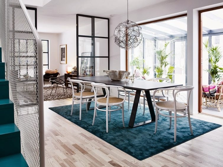 Buenos días de sábado! Hoy vamos rápidas porque este sábado es uno de esos días en el que tenemos mil cosas pendientes, este post está sin programar, y ya llegamos tarde a todas partes. Penas a parte, os contamos que el ambiente ecléctico de la casa es lo que más nos ha gustado. Líneas rectas, con mezcla de estilos en los muebles y unos acabados que nos sorprendes (a quién no le gustan esas escaleras en azul??? Otra cosa sería ponerlas en nuestra casa, verdad?).