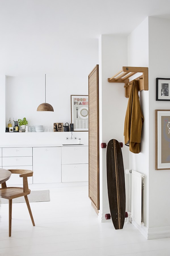 Se trata de su vivienda familiar en Copenhagen, nos encanta su sencillez y funcionalidad sin perder la importancia de la estética. Hay pocos elementos pero crean un conjunto muy armonioso y natural que da a la casa mucho carácter. Las obras gráficas tienen un gran protagonismo sobre esta base neutra y destacan dando un aire más juvenil y fresco al espacio.