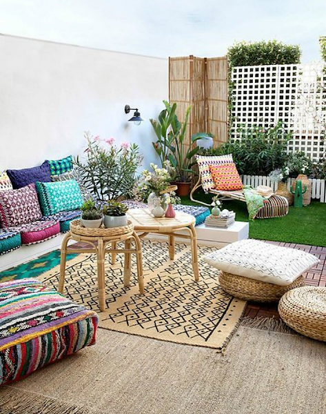 En realidad la terraza ya la pudimos ver en profundidad en este artículo de Terraza decorada con muebles, textiles Y accesorios de IKEA En el podéis ver cada mueble con sus enlaces correspondientes por si queréis recrearla en vuestro hogar. Aunque desgraciadamente los textiles formaban parte de la edición limitada JASSA que ya no está disponible.
