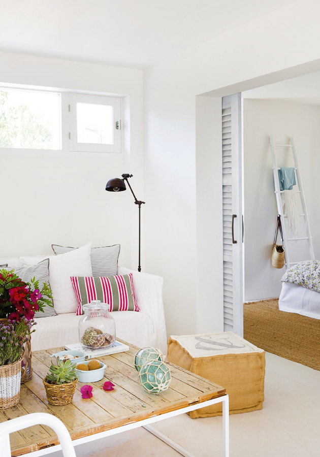 Esta casa es obra de la interiorista Estela Gómez Lupión, quien ha sabido combinar a la perfección el estilo blanco del mediterráneo con fibras naturales y muebles rescatados, consiguiendo una casa perfecta para pasar el verano.