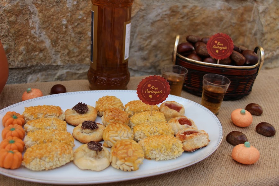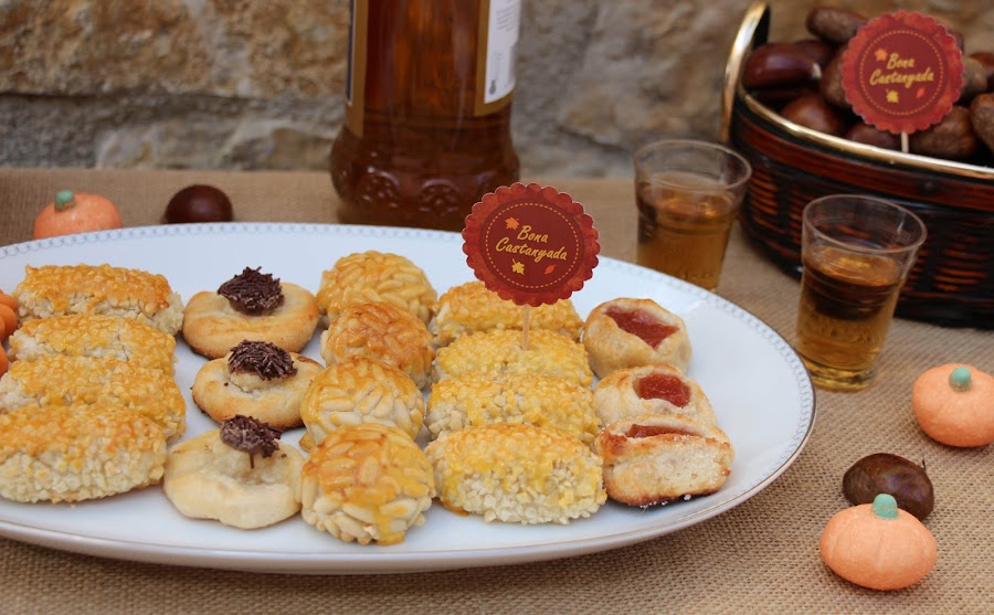 Hoy es el día de la catañada en Catalunya, noche de comer panellets, castañas asadas y boniatos, todo regado con moscatell, pero como siempre hay algún niño que no le gusta incluyo en la bandeja algún bombón y gominola en forma de calabaza para disfrute de los pequeños.