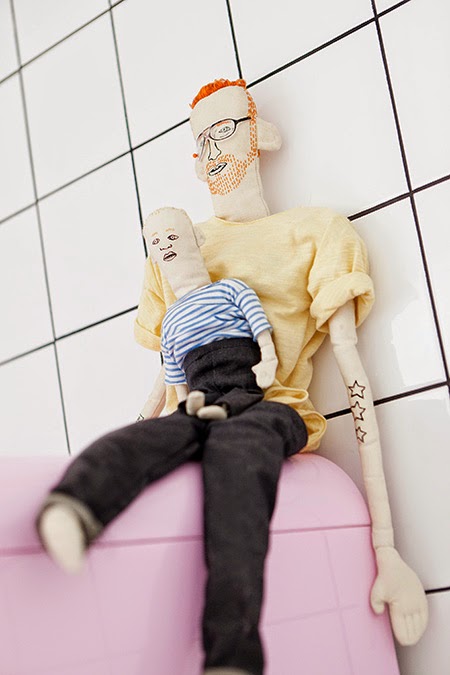 Sobre la nevera Smeg, muñeco representando a Pär y su hijo más pequeño.