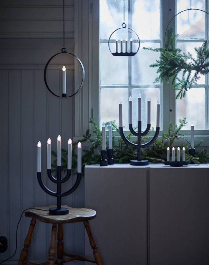 Las luces de navidad siempre son un imprescindible para Navidad. Entre todos los diseños disponibles, podemos encontrar luces sencillas y elegantes a diseños más divertidos, como pueden ser en forma de figuras típicas de la navidad. Además, si tenéis de difícil acceso los enchufes, en IKEA podemos adquirir guirnaldas de luces que funcionan con pilas, así nos olvidamos de alargadores y de cables antiestéticos que recorren el salón. Asimismo de guirnaldas de luz podemos adquirir preciosos faroles para decorar e iluminar un rincón de nuestro hogar.Velas Navideñas