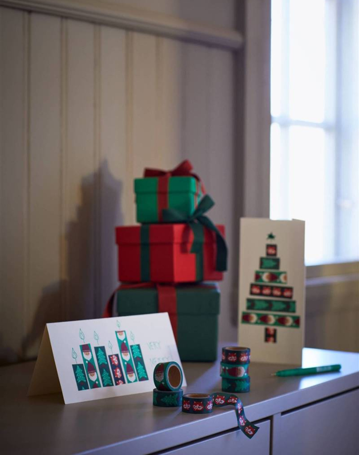La navidad suele venir cargada de regalos, por lo que la papelería también va a estar presente en el catálogo de IKEA Navidad 2021. En la colección de Navidad 2021 de IKEA puedes encontrar todo tipo de material para envolver tus regalos. Papel de diferentes estampados, cajas de distintos tamaños, cintas y cuerdas de varios colores y prints... Lo puedes encontrar todo por precios muy económicos Vía: IKEA