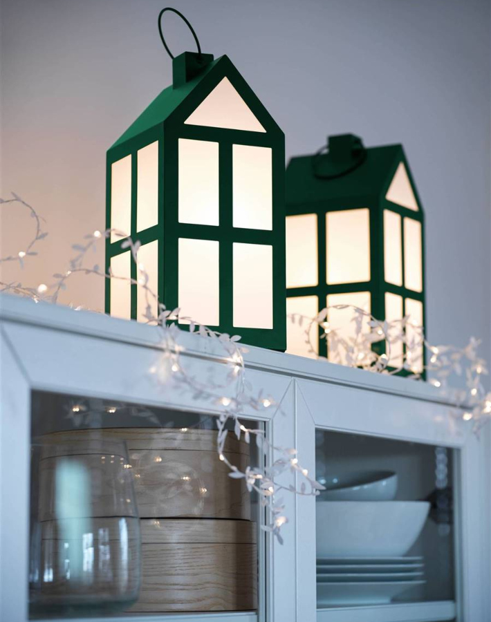 Las luces de navidad siempre son un imprescindible para Navidad. Entre todos los diseños disponibles, podemos encontrar luces sencillas y elegantes a diseños más divertidos, como pueden ser en forma de figuras típicas de la navidad. Además, si tenéis de difícil acceso los enchufes, en IKEA podemos adquirir guirnaldas de luces que funcionan con pilas, así nos olvidamos de alargadores y de cables antiestéticos que recorren el salón. Asimismo de guirnaldas de luz podemos adquirir preciosos faroles para decorar e iluminar un rincón de nuestro hogar.Velas Navideñas