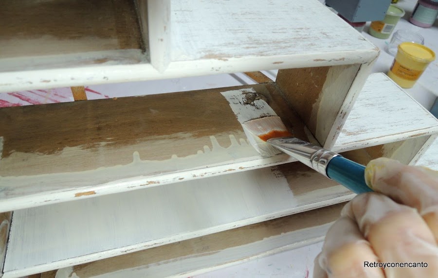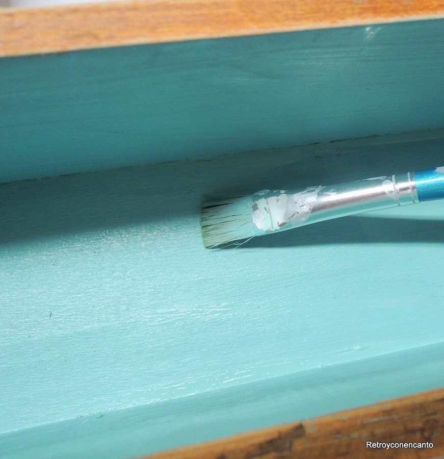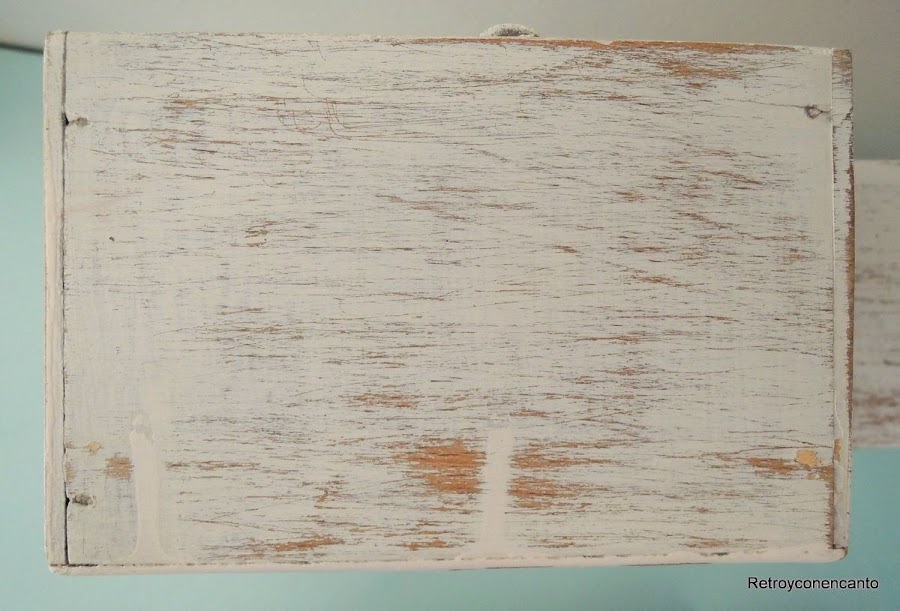 La base del mueble estaba pintado en crudo con pintura sintética que debíamos eliminar, pero como tememos al decapante como a una vara verde, nos decidimos a lijar con esmero antes de pintar de nuevo con nuestra amada pintura a la tiza... Cual fue nuestra sorpresa que el resultado del lijado nos encantó y lo dejamos tal que así.