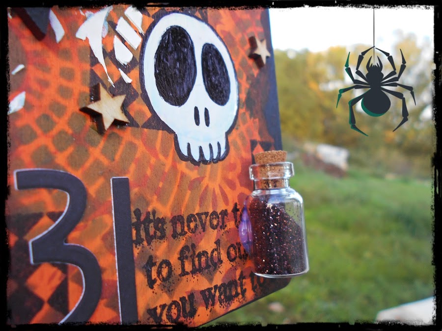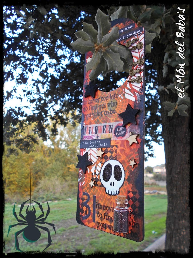 Así que estoy inspirada... Aquí tenéis mi primera creación de Halloween para este año. Un cartel de madera, del que he partido de cero, y que a base de capas de pintura, de stencils y de sellos, he llegado hasta aquí. Qué bien me lo ha pasado!!!