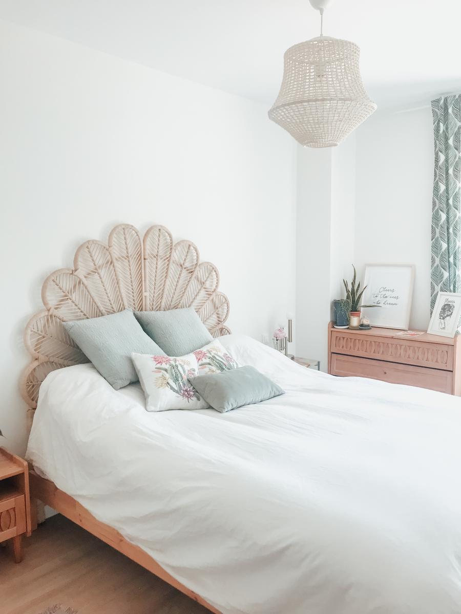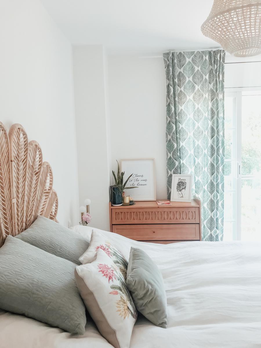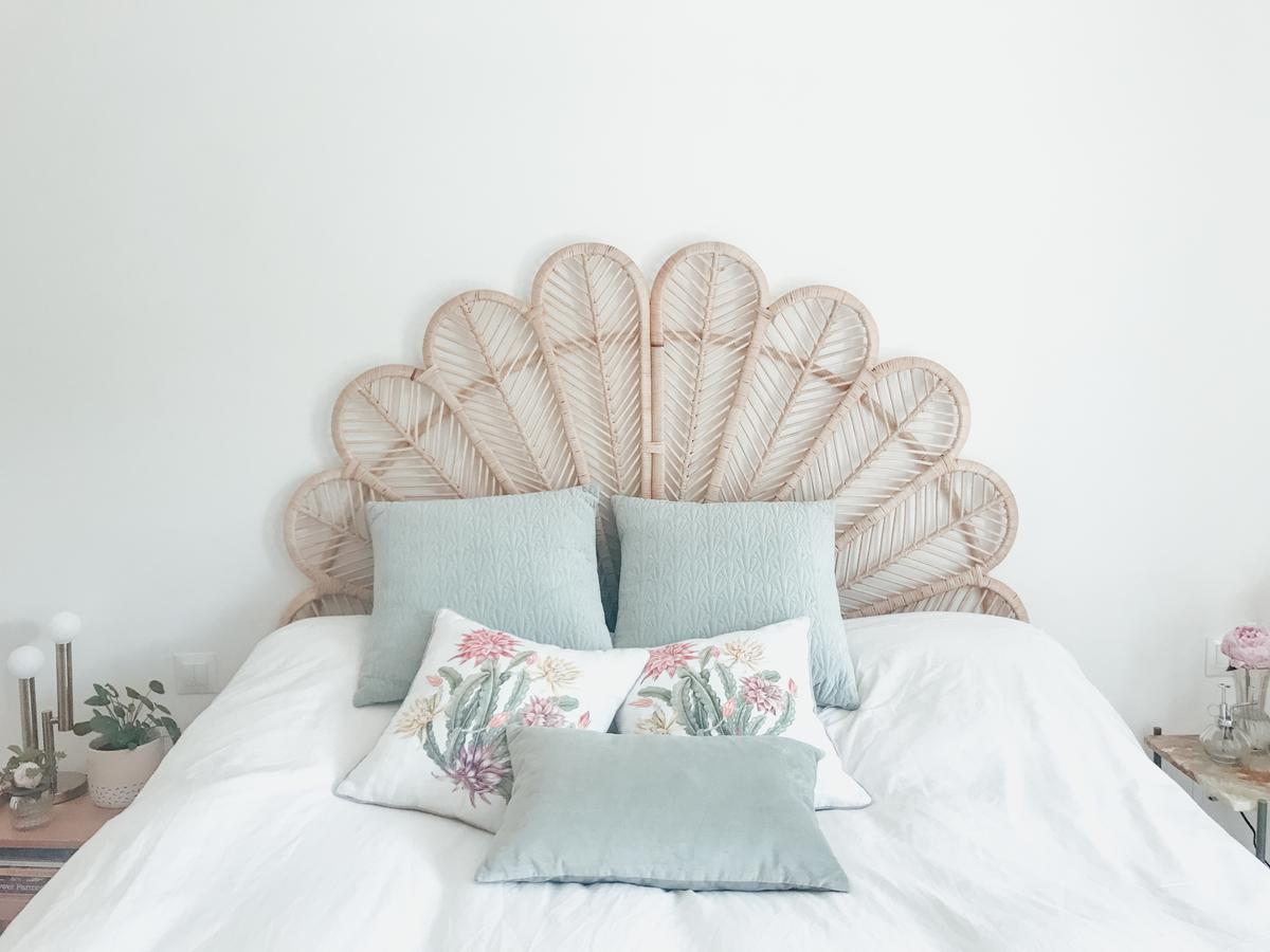 Su dormitorio fue también una de mis estancias preferidas. El cabecero de ratán al más estilo vintage y las mesitas recuperadas repletas de flores y libros sobre ellas Son si duda estancias llenas de vida.