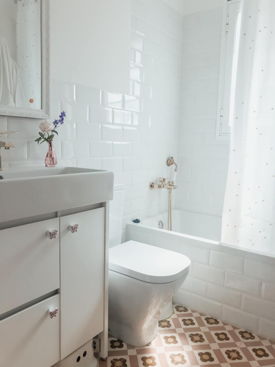 Los baños también me encantaron. Me gusta mucho la sensación que se transmite como de spa y de frescura cuando a un baño reluciente de baldosas le añades plantas y flores. Además, todas las piezas de los baños han sido recuperadas y restauradas por ellos, con lo que todavía tienen más personalidad. El toque de las baldosas hidráulicas en el suelo es sin duda, un gran acierto. Me fue genial para coger ideas para cuando reformemos nuestros baños, que es lo último que nos queda del piso. Aunque creo que vamos a tardas, primero para recuperarnos económicamente y segundo para echar de menos u olvidarnos lo que es vivir en obras…