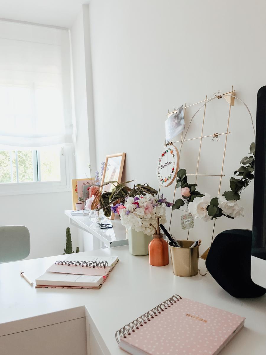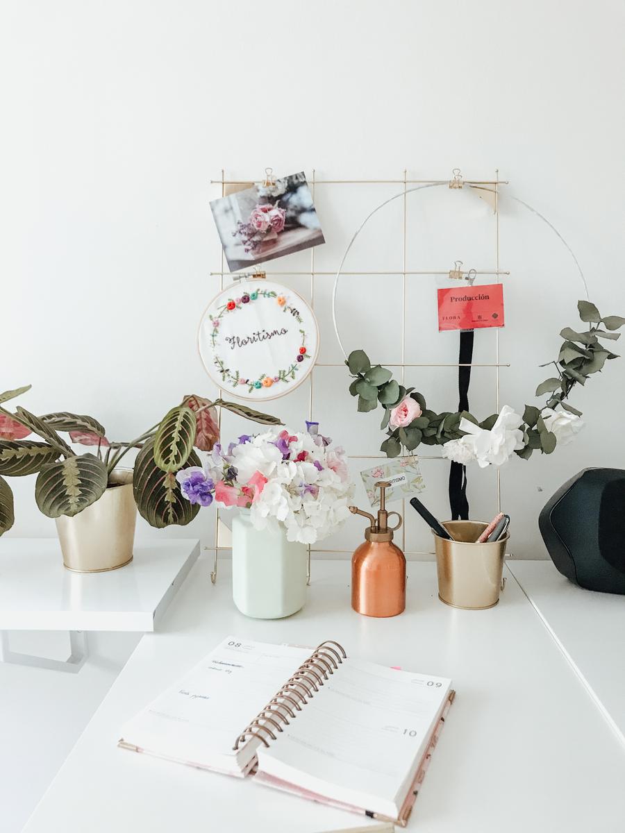 ¡Ah! y por último su oficina. Los dos se dedican de pleno al proyecto de Floritismo, con la shop online, los cursos, la decoración floras de bodas y eventos (ellos fueron los que hicieron la Deco floral del cumple de Valentina ;), así que dedicaron una estancia de la casa para su lugar de trabajo, que por supuesto, estaba lleno de inspiración y de flores…