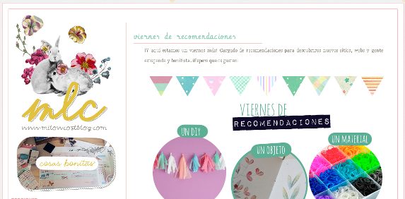 * Mi low cost blog habla de temas muy variados, y lo que no me pierdo nunca son sus recomendaciones de los viernes, descubro tantísimas cosas que prefiero mirarlas en domingo, tranquila y disfrutando cada nuevo descubrimiento.
