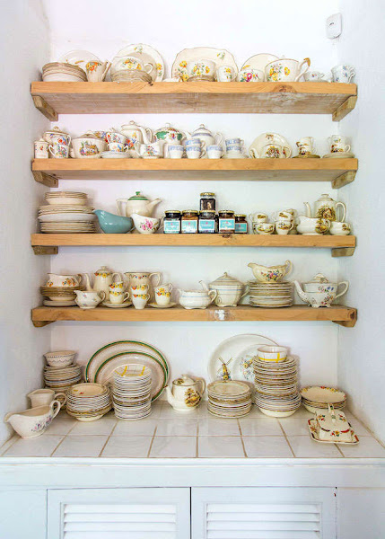 Y es que vista de desde fuera, estoy segura de que pensaríais que se trata de una casita en la provenza con todo lo que se puede esperar de ella. Esa fachada blanca impoluta con su porche de vigas de madera, esa contraventanas color verde agua marina, o ese cuidado jardín con árboles frutales.