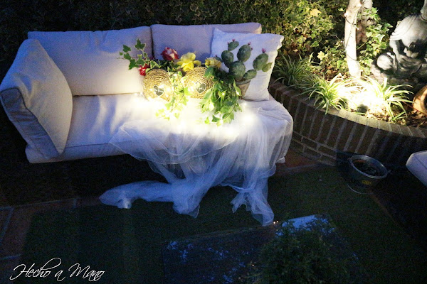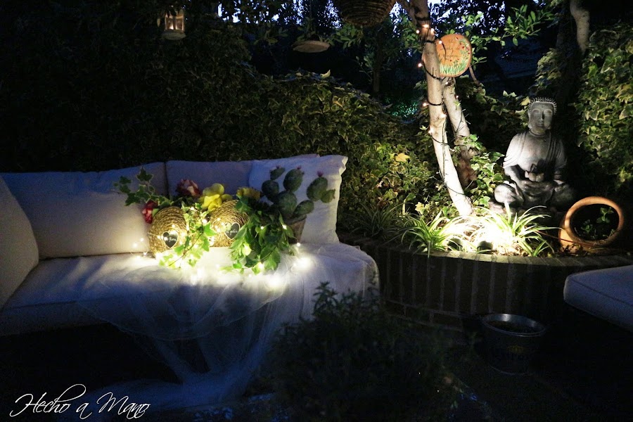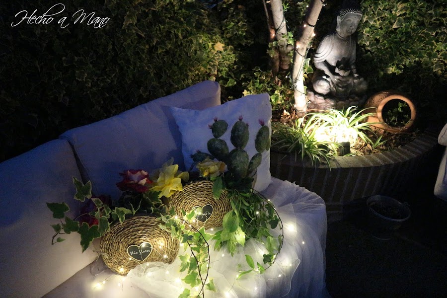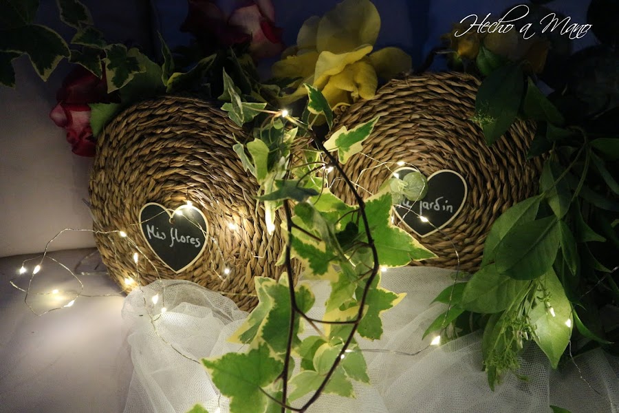 En las fotos de día, me di cuenta, a posteriori, de que no había puesto las pizarritas decorativas en forma de corazón sobre el frente de cada cesta.