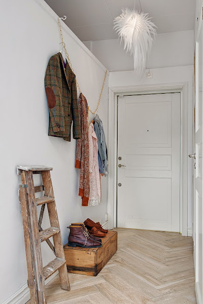 Tenía ultimamente un poco abandonada esta sección, pero hoy vengo con fuerzas a retomarla y a mostraros unas escaleras utilizadas como percheros en un recibidor. ¿ Te apuntas? Feliz miércoles
