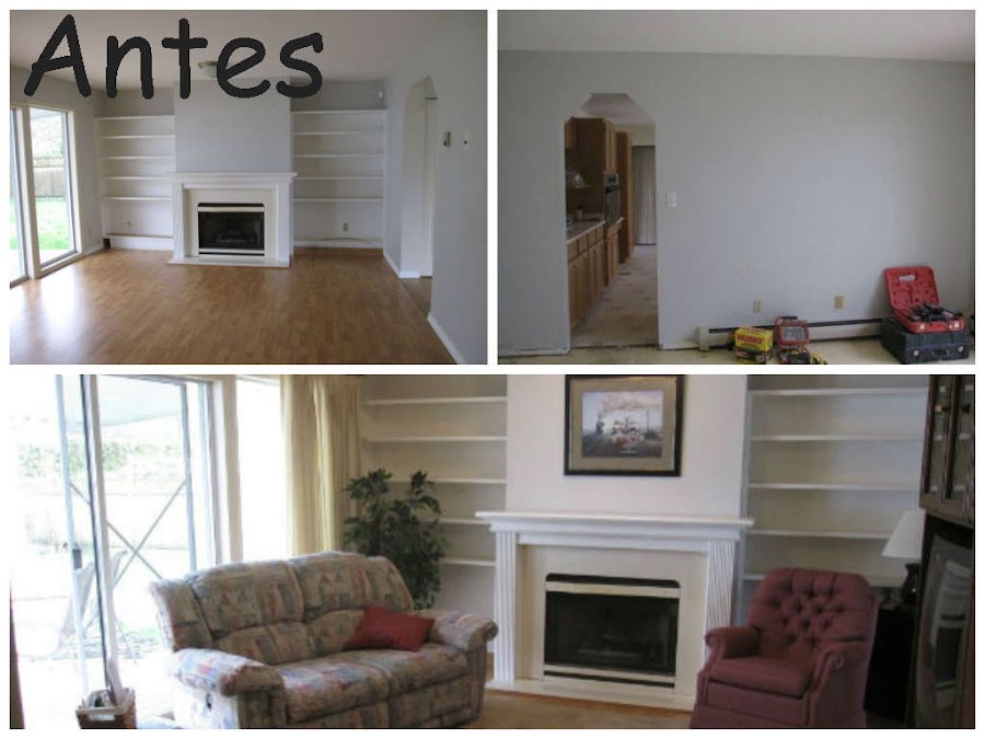 Se amplió el paso a la cocina para que fuera una continuación del salón, se pintaron las paredes en blanco con acabado brillo y se cambiaron los antiguos sofás por unos muy modernos de Ikea. Se combinaron piezas de diseño como la lámpara de la consola de la firma Ralph Lauren, con piezas sencillas que le aportan color. En la última fotografía vereis el salón antes del tremendo cambio. Increible la transformación que da lugar a un espacio lleno de frescor, de luz y con un diseño moderno y alegre.