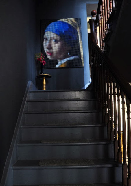 Este famoso cuadro de Vermeer tiene su aquel, ¿no creéis? La mirada subyugante de la chavala, ese estiloso turbante que corona su testa, ese leve claroscuro que resalta la luz del rostro, el llamativo zarcillo que pende de su lóbulo.... Pues si, ese rostro femenino tiene un no sé qué misterioso..., como "un algo" oculto... ¿Guardaría algún secreto, como la perla que parece colgar de su apéndice auricular? Porque nos hemos enterado (que somos nosotras muy cotillas) que hay muchas dudas sobre sí realmente era nácar lo que pendía del exterior del pabellón auditivo de la joven. Al parecer, el título original del óleo podía haber sido "Un retrato al estilo turco". Además, se dice que en el siglo XVII había escasez de perlas, y que éstas eran usadas por grandes damas, lo que no parece ser la retratada. ¿Sería de estaño pulimentado o plata ese pendiente? Pues que se peleen los entendidos, que nosotras seguiremos disfrutando de la belleza de este cuadro, como los propietarios de estos hogares que le han dado protagonismo en sus estancias.