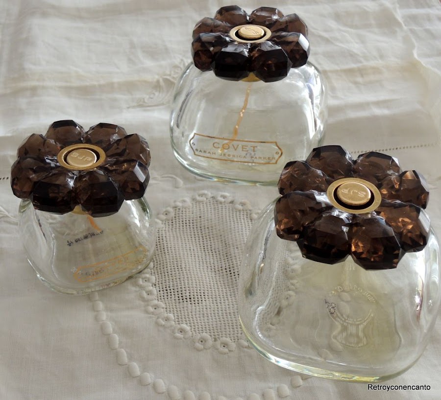 Guardamos algunos de los frascos vacíos del perfume que una de nosotras usa, y del que ya hablamos por aquí. Ellos fueron nuestra inspiración