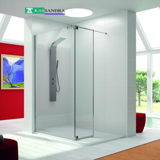 Es la novedad en cuanto a mamparas modernas. En realidad son paneles fijos que incluyen un pequeño segmento batiente con apertura 180º que permite cubrir un poco más de superficie para evitar salpicaduras, y entrar y salir de la ducha cómodamente.