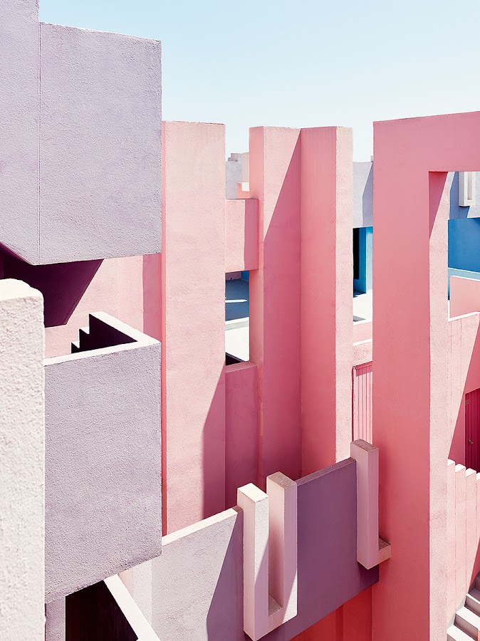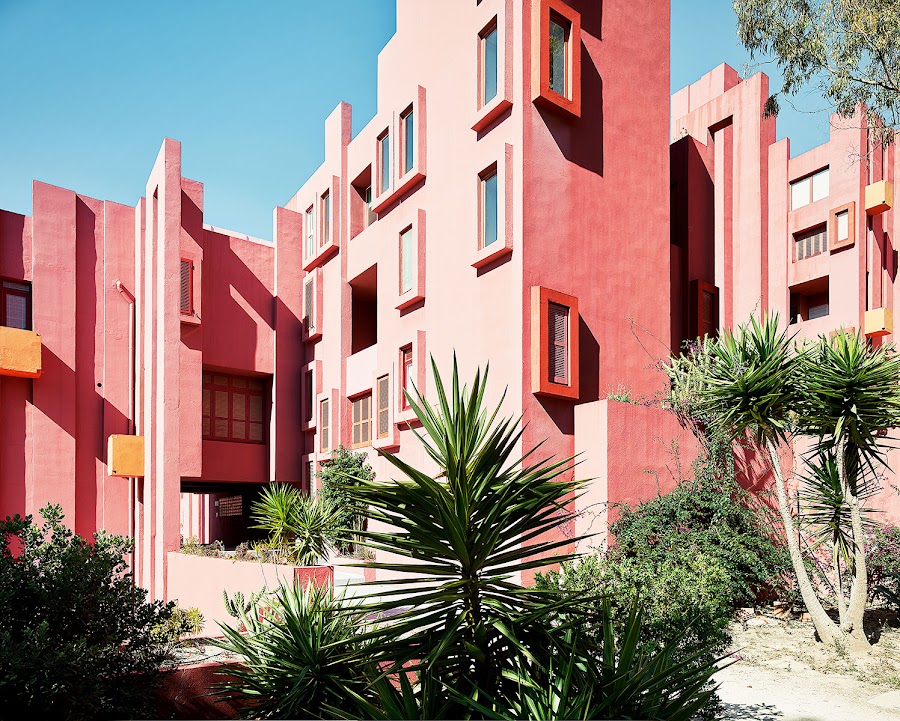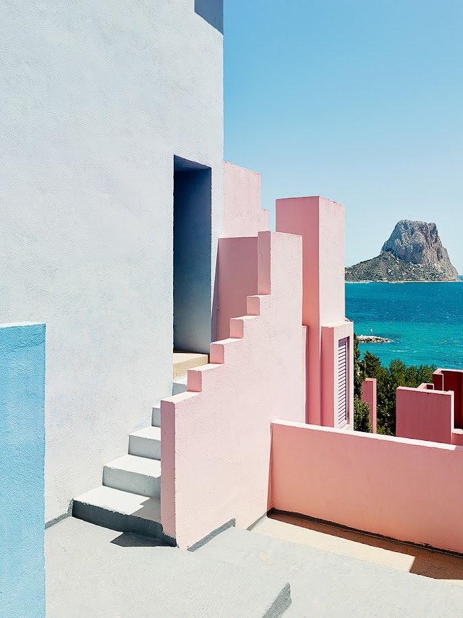 Construida por Ricardo Bofill y su estudio en los 70, saltándose los paradigmas modernistas de las primeras líneas de playa españolas de la época (que hoy día seguimos sufriendo), fue creada como un laberinto, con diferentes volúmenes, pasadizos, conexiones horizontales, verticales y escaleras, que más que funcionales, parece que lleven al cielo...y al bendito Mediterráneo.