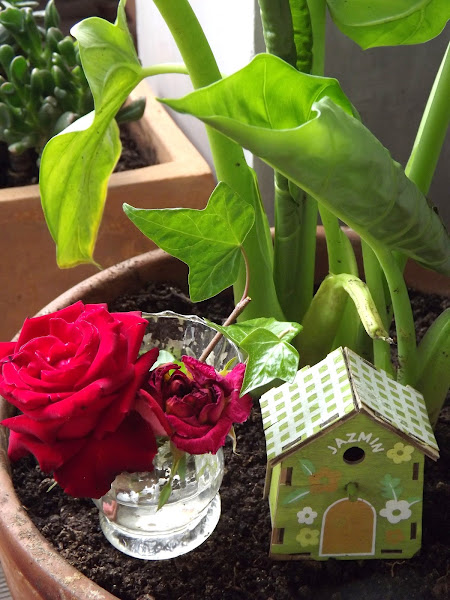 Martes repleto de nubes que recorren mi ciudad, pero yo os lo ilumino con mi nueva marquesa, mi roja celosía y mis preciosas rosas sumergidas en agua. Gracias a Rosalia, como así se llama mi cuñada jardinera, puedo hoy presumir de nuevos rincones verdes que poderos enseñar...