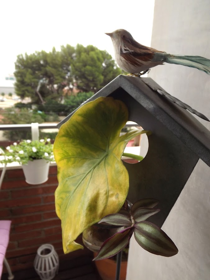 Precioso nombre para una variedad a la que también se la conoce por Alocasia, Oreja de elefante, Colocasia, Manto de Santa María, Ñame de Canarias o Taro de jardín. No la he comprado chicas, simplemente me la ha dado mi cuñada de la planta madre que ella tiene en su enorme terraza.