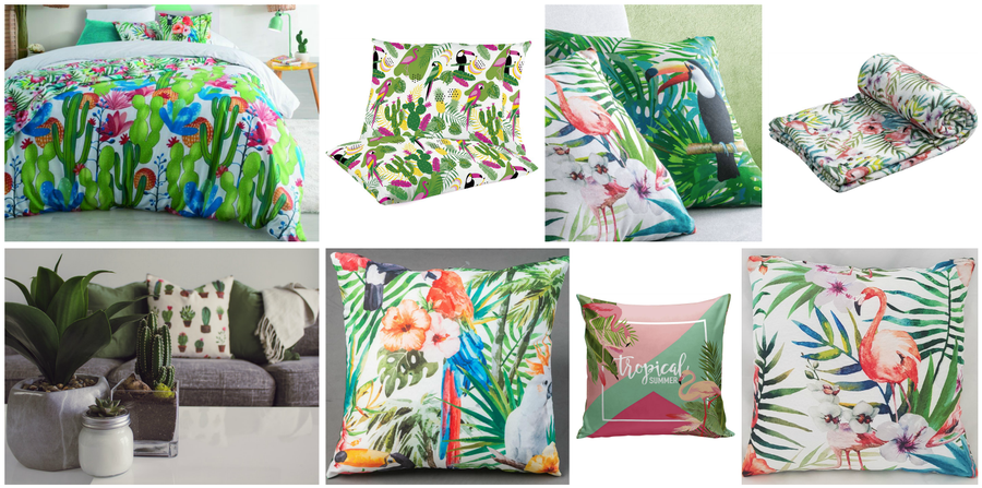 Esta tendencia puede recordar mucho a la anterior y sí que es cierto que están relacionadas. Ambas comparten el gusto por las plantas y los estampados selváticos, pero en esta ocasión se añade un elemento más: ¡el colorido! Ya no solo entra el juego el verde, este se acompaña de rosa, naranja, azul o amarillo, colores que encontramos en motivos tropicales como en la aves o en las flores.Si bien es cierto que en el anterior estilo encontrábamos hojas en los estampados, en la decoración tropical tampoco pueden faltar los flamencos, los papagayos, las flores e, incluso, los cactus. Si buscas una decoración alegre y que te traslade a un lugar paradisíaco, ¡estas piezas no deben faltar en tu hogar! Podrás decorar con ellas tanto el interior de casa como la terraza o el jardín. ¡No te olvides de combinarlo con muchas plantas!