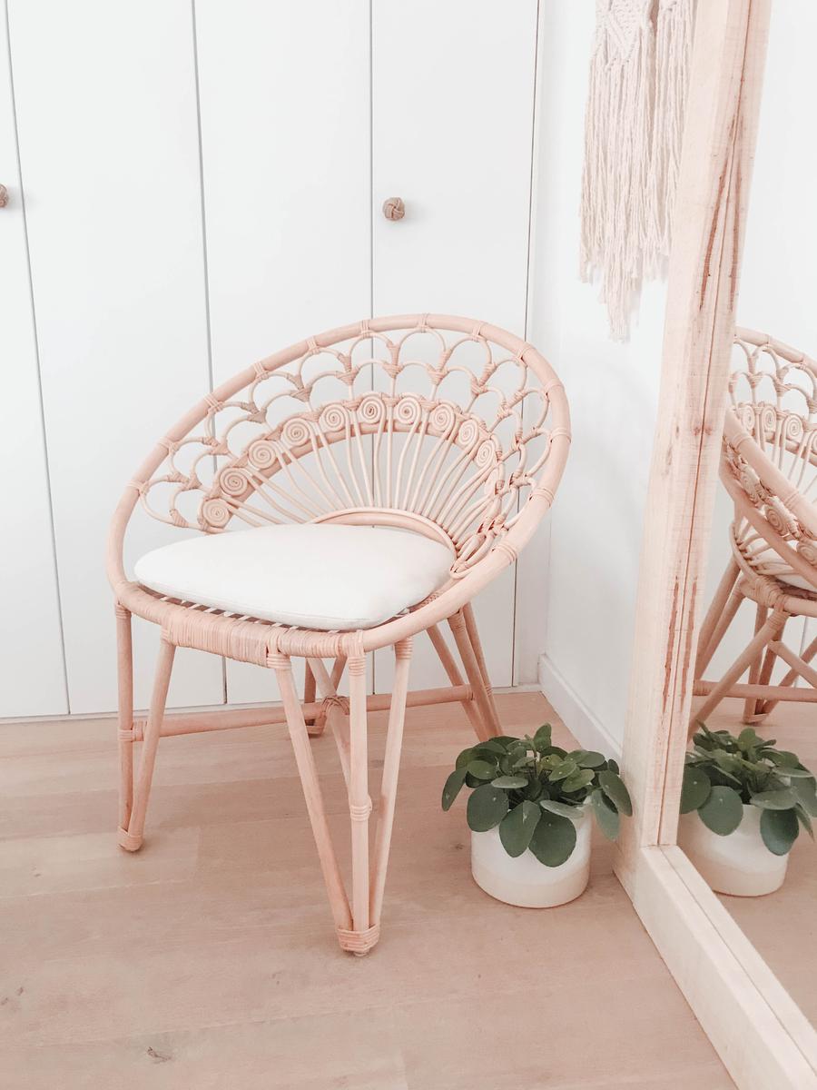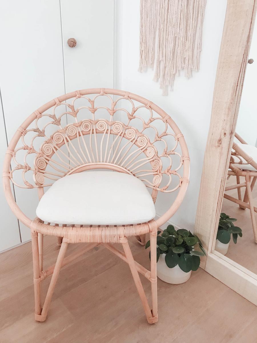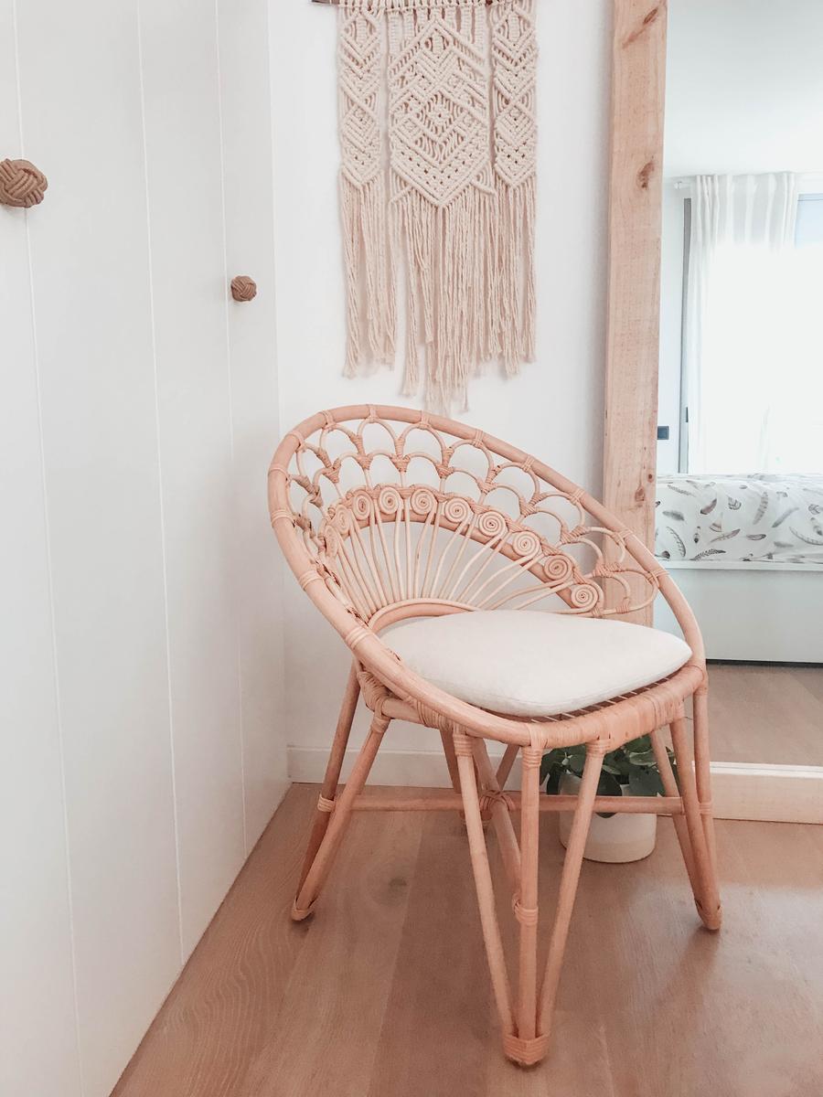 Y por último también quería aprovechar para enseñaros la última adquisición que hice en La Redoute, aunque no fuera para el salón, pero es que ha sido la pieza preciosa y esperada de nuestro dormitorio, el último toque que le quedaba. Tenía muchas ganas de un sillón de ratán con estas formas y aunque es de jardín, queda genial de interiores, ¿no os parece?