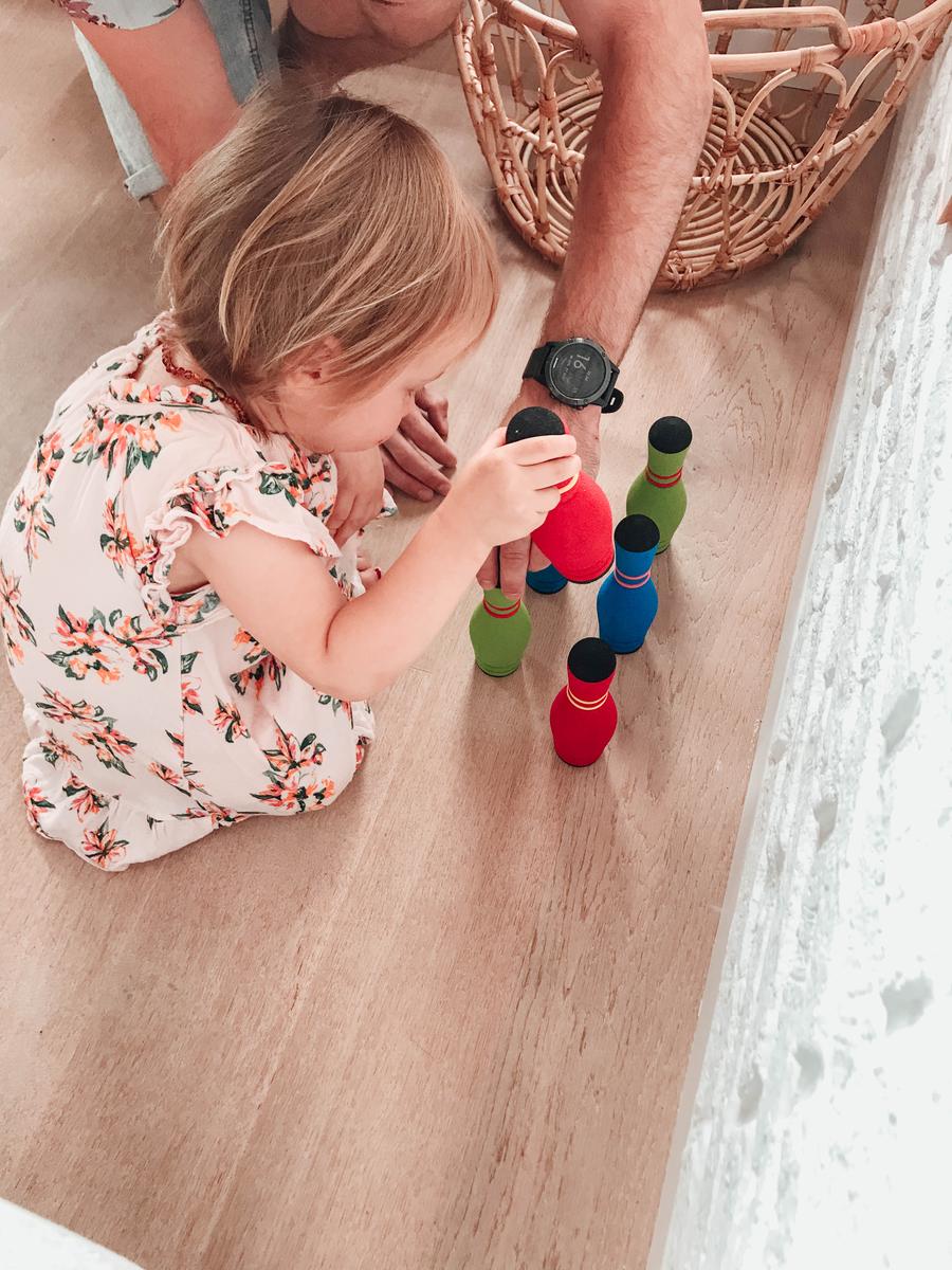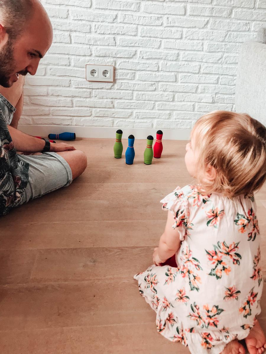Juegos como los bolos o el disco, que además de volver también loco a su padre, son juegos que podemos hacer tanto dentro como fuera de casa ahora que hace buen tiempo; o dentro de casa si la ola de calor solo nos permite hacer cosas que seas compatibles con el aire acondicionado