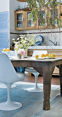 Creada por el diseñador Eero Saarine en 1.955 para la empresa Knoll, es uno de los diseños más reconocidos del S. XX y después de 57 años sigue expresando Modernidad. La silla Tulip alcanzó unos de sus principales objetivos : despejar el interior liberándose de las patas, y justo por esto me parece muy idónea en la Cocina, por eliminar toda clase de obstáculos y por dar a la Cocina ese aire tan clásico de modernidad.