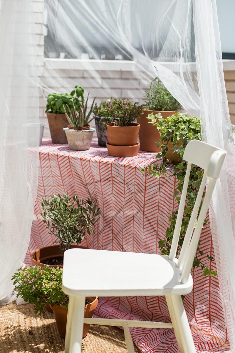Unos cojines, una mosquitera, lámparas colgantes y alfombras fueron suficientes para darle vida a la terraza y acompañar a las auténticas protagonistas, las plantas de María. Y aunque nuestro estilismo lo hicimos de día, las guirnaldas de luces y unas velas serían suficientes para poder disfrutar de esta enorme terraza también de noche.