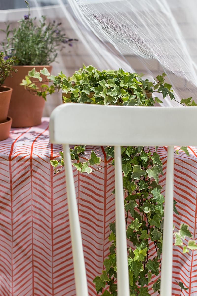 María Pazos tiene la enorme suerte de tener una gran terraza en su casa. Sin embargo, por circunstancias diversas, no la tiene montada ni amueblada. Hace una semanas me lanzó la idea de hacer algo para crear un poco de ambiente. Y yo ni corta ni perezosa, cogí el lazo y allí que me planté.