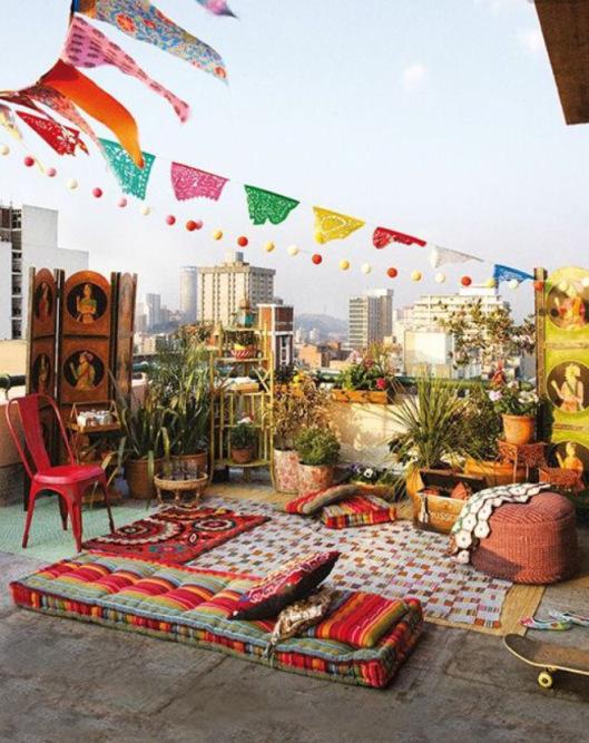 Para alimentar la idea de mi futura terraza, he seleccionado unas cuantas imágenes muy boho, fáciles de imitar y súper sencillas, para inspirar a quienes ya tenéis terraza y a los que la soñáis como yo: