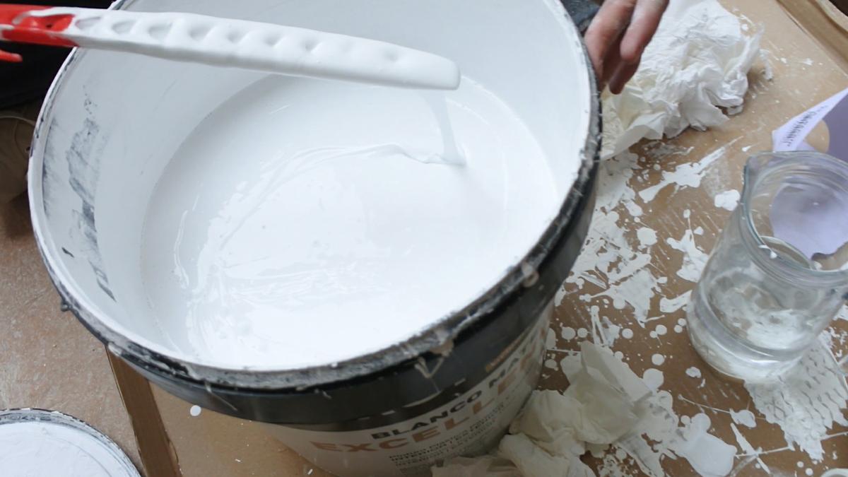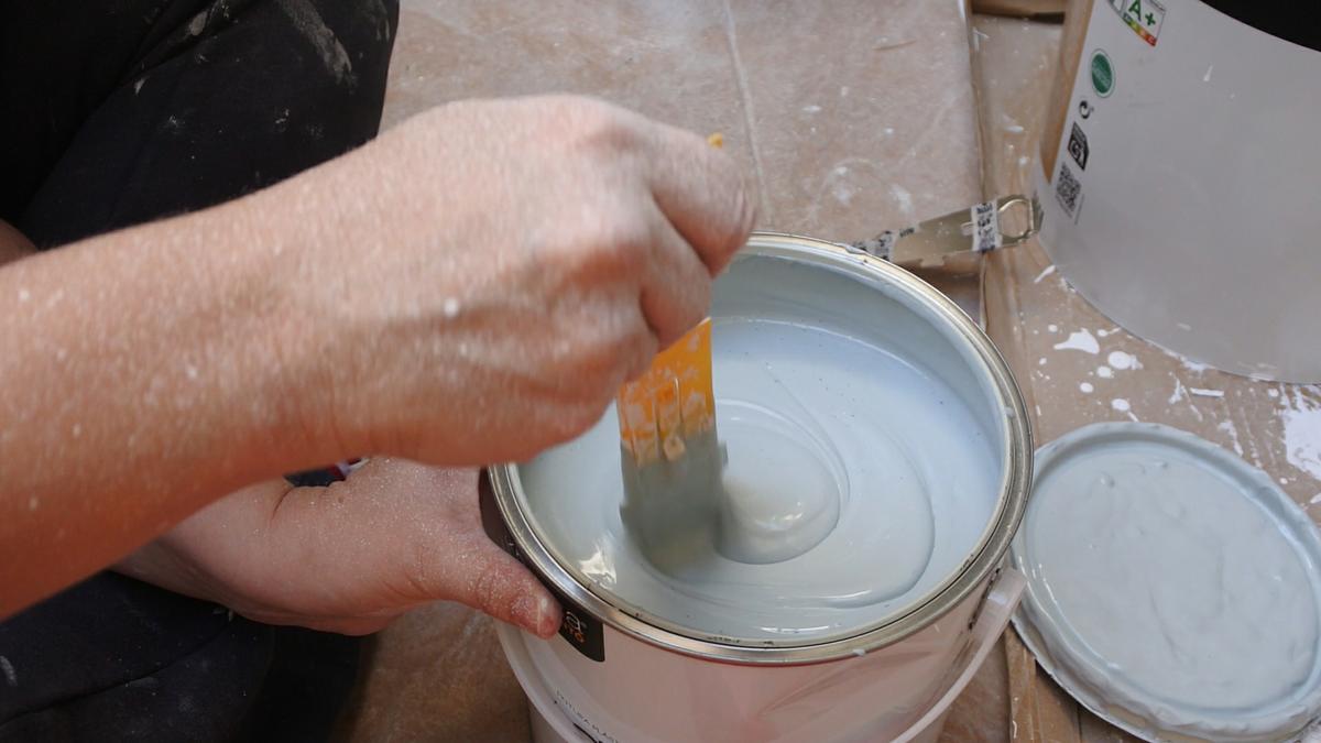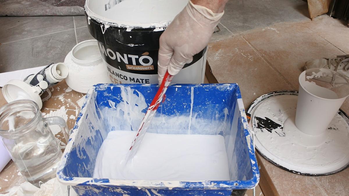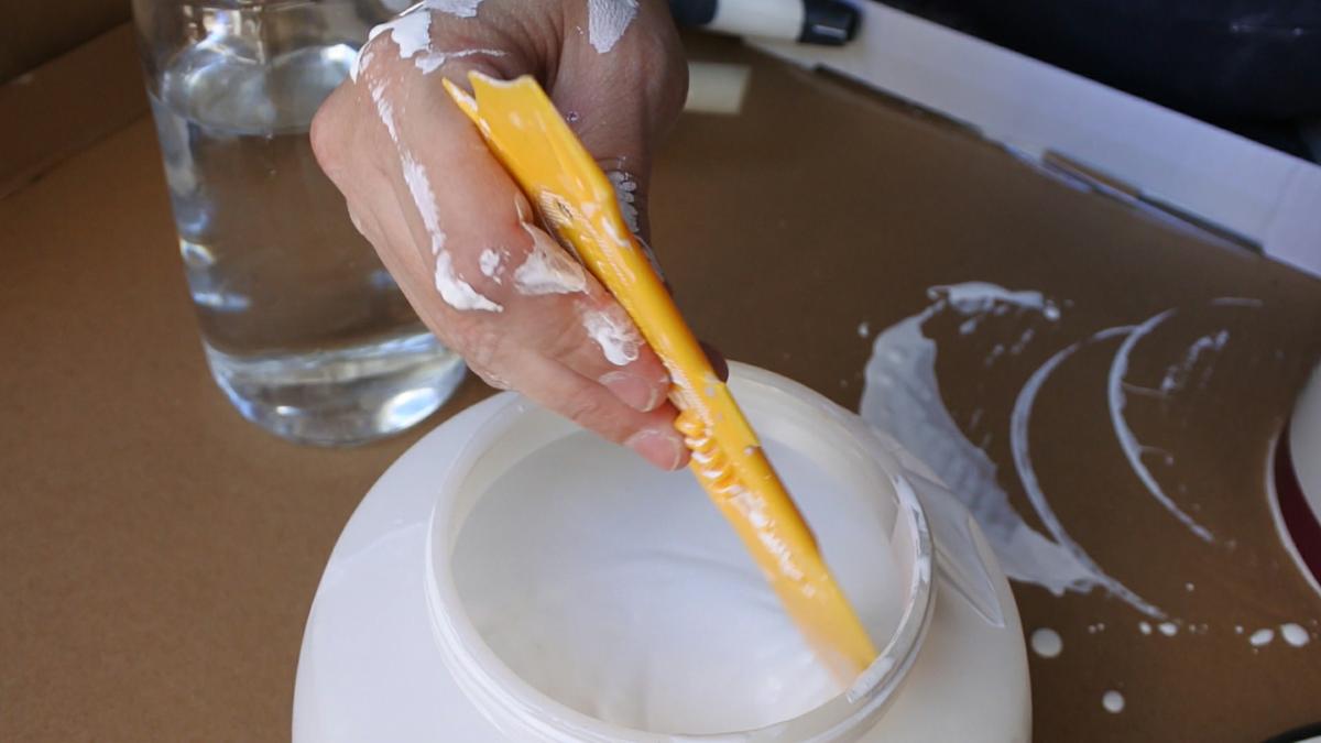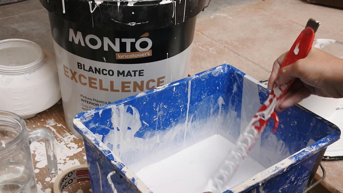 En este caso también es importante mover bien la pintura antes de comenzar a pintar, para ello utilizamos un palo mezclador.