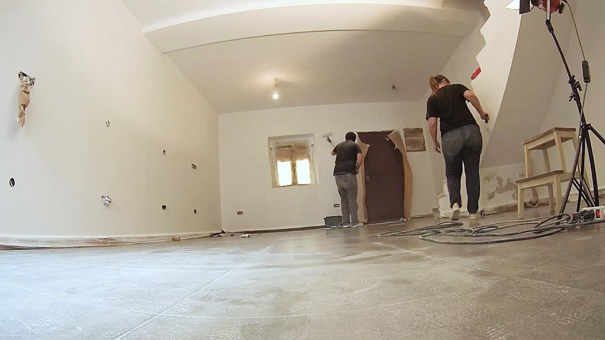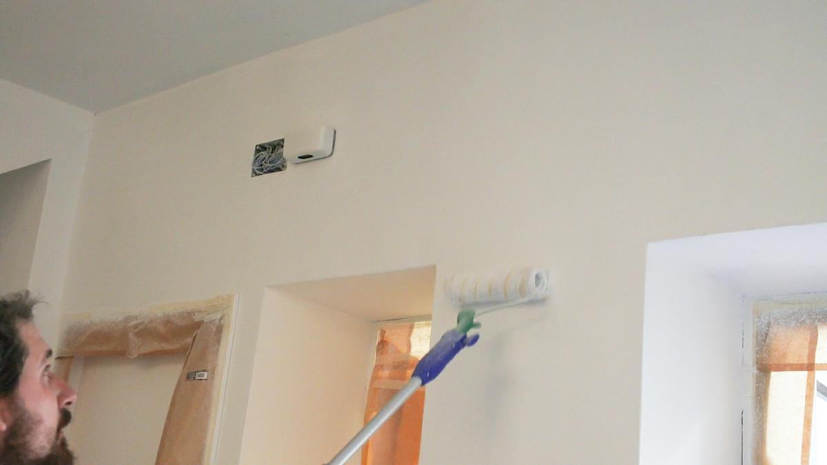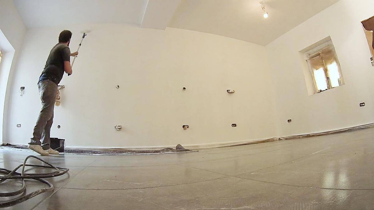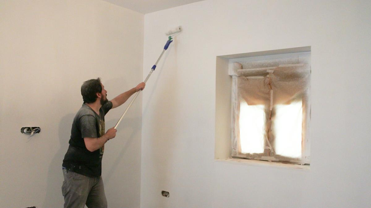 Continuamos con la pintura; como os decía, la pistola comenzó a fallar. Básicamente el gatillo perdió fuerza y eso nos comenzó a dar problemas a la hora de esparcir la pintura, por ello para la pintura nos pasamos al rodillo.En las fotos superiores podéis ver el proceso. De esta pintura decidimos aplicar dos capas ya que al ser paredes nuevas y ser la primera vez que se pintaban pensamos que sería lo mejor.