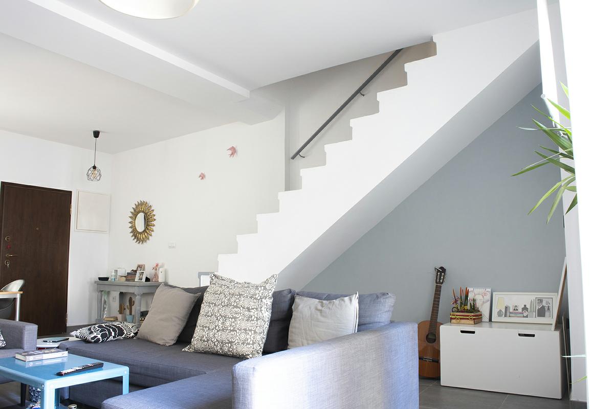 Con los últimos retoques de las paredes del salón, nos pusimos manos a la obra con el bajo de la escalera. Pensamos que al ser todo tan blanco podría ser una buena zona para añadir un poco de color, y para ello nos decidimos por la gama Nordic también de Montó Bricolovers.Es la misma pintura que utilizamos para los cambios en el baño.