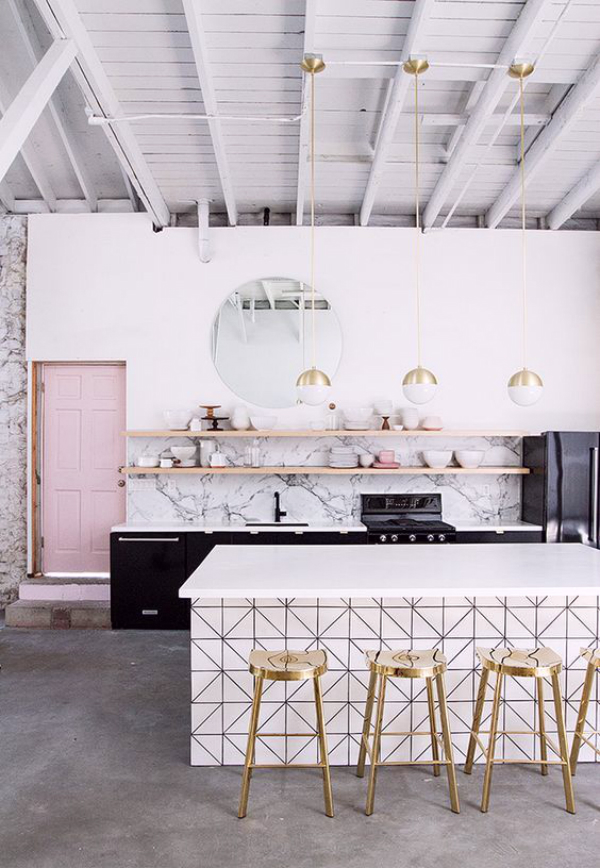 Buenos días Hoy os he seleccionado una serie de estancias con un toque rosa. A mi me gustan mucho los colores suaves, pero he de reconocer que un toque fucsia o rosa combinado con grises o con beige también me encantan. El contraste que hace el rosa hace que la decoración sea muy peculiar y además agradable y un poco femenina. En esta cocina aunque predomine el blanco y el negro, el hecho de te ...