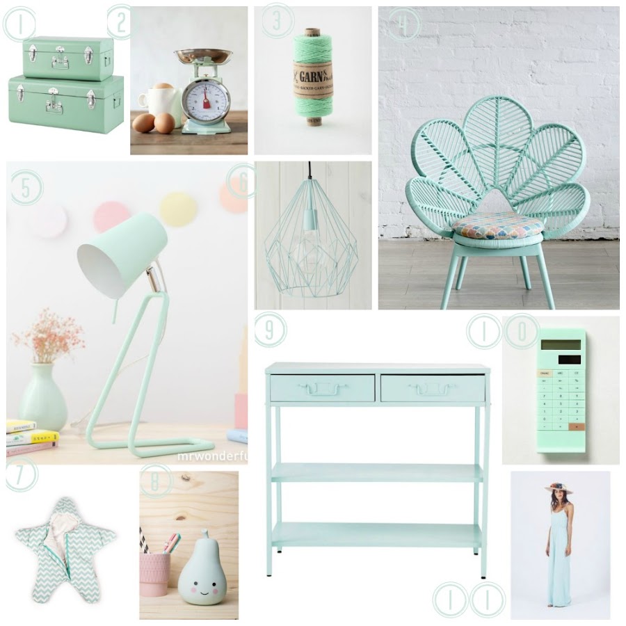 Como sé que no soy la única que tiene debilidad por este color, te traigo una selección de objetos en mint para pasar el domingo.