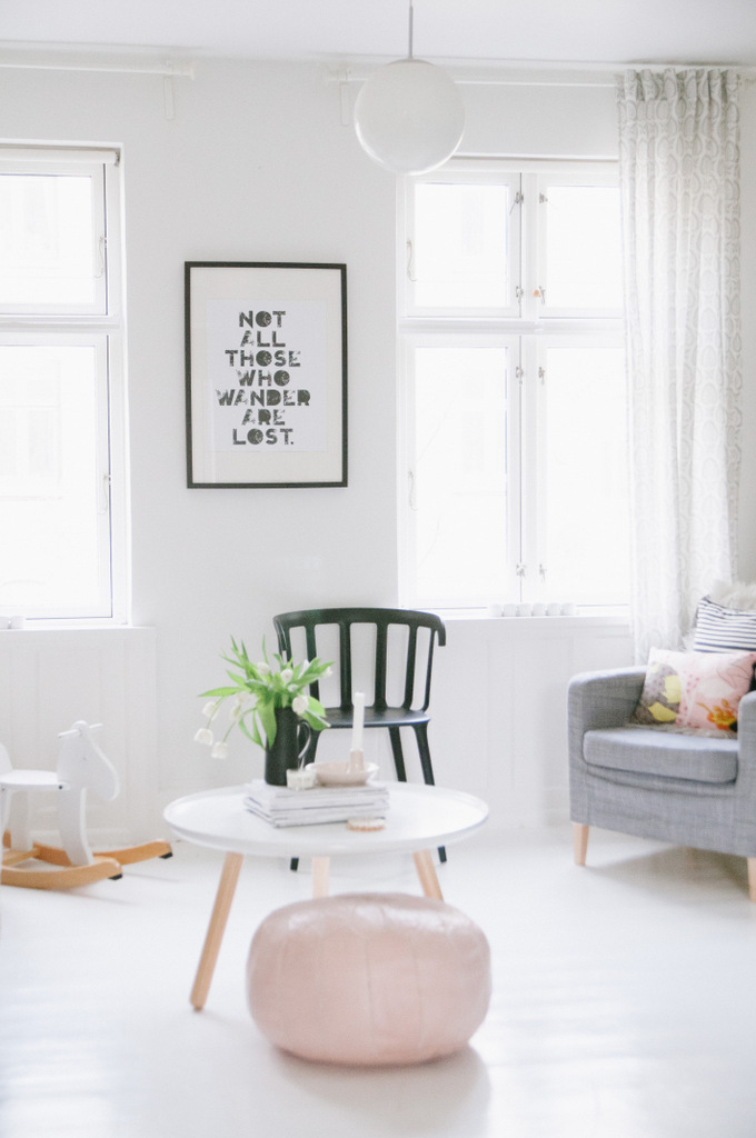 Esta vivienda situada en Copenhage pertenece a la bloguera Tina Fussel, del blog Travelling Mama y que comparte con su marido fotógrafo y sus tres hijos. Como os he comentado está plagada de detalles, pues el estilo escandinavo se ha suavizado con elementos en tonalidades pastel que le dan un toque romántico precioso.