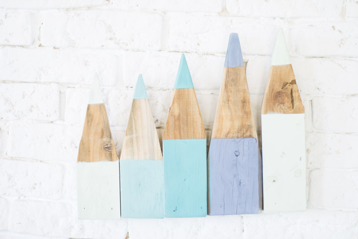 No se necesita más que unos listones de madera cortados a diferentes longitudes, unas cuantas pinturas chulas y muchas ganas de pasarlo bien... Yo me decanto por los colores pastel, y por lograr una homogeneidad del conjunto usando la misma gama cromática.