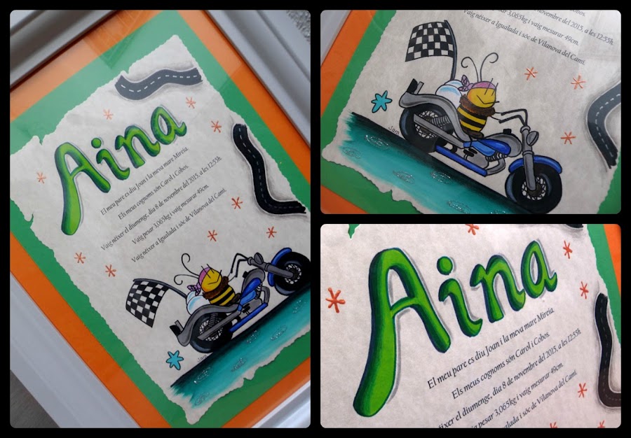 Hoy os traigo la lámina de nacimiento de Aina. Es un encanto de niña y ya tiene tres meses, y desde hoy también tiene su "natalicio" para no olvidar los detalles importantes del momento de su nacimiento.