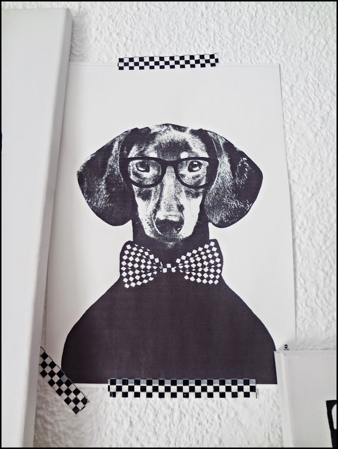 También hace un tiempo me imprimí un par de láminas de Lisa Bengtsson, otra diseñadora gráfica que hace láminas también en blanco y negro con imágenes de perros salchicha super graciosas!