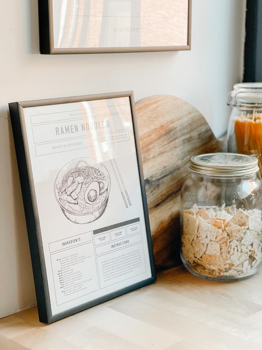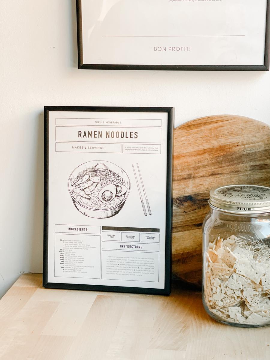 Y también decidimos añadir dos láminas más: uno de nuestros platos preferidos, el Ramen, y otra: una de personalizada con la receta de las tortitas de Ramon. ¿Qué os parecen?
