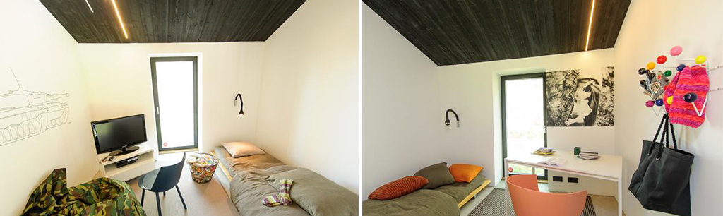 Se encuentra en un terreno cubierto de árboles en una ladera orientada hacia el sur, dividida en tres niveles. Los arquitectos se han basado en el "menos es más" la simplificación al máximo, es compacta y simple, resultando un alojamiento en el que se fomenta la convivencia, creando espacios minimalistas y totalmente abiertos en el que la vida tiene una presencia constante en su interior.