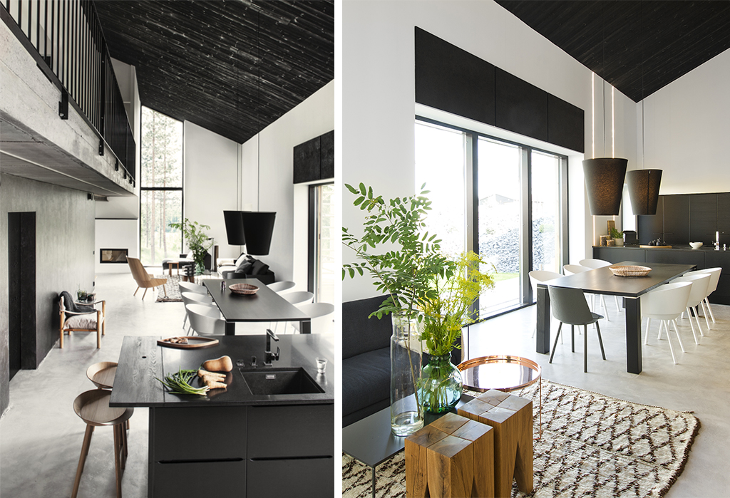 Y aunque el entorno es acogedor y el marco interior que os he presentado es frío y neutro, los interiores tienen mucha personalidad gracias a una serie de detalles como varias butacas de madera o la alfombra en tonos tierras, que aportan calidez y un aire rústico a una vivienda que no deja de ser muy vanguardista.
