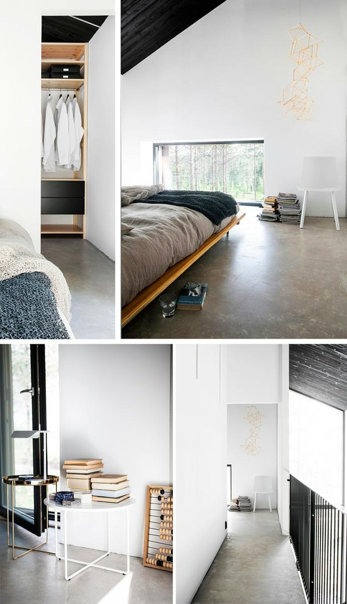 El hormigón se visualiza en el interior de la casa y la misma línea se ha seguido en los techos, mostrando vigas de acero sin tratar, rematando este marco frío y neutro, con suelos de cemento pulido en toda la vivienda. En los cuartos húmedos, os fijaréis que no existe ni una sola baldosa o azulejo.